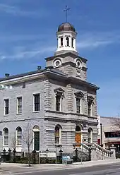 - π Old Lincoln County Court House, 105 King St (at James St). Constructed 1848-1849, the building was modelled after the town hall in Perugia, Italy. It features a quaint tower with a three-face clock under an octagonal cupola.