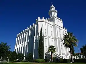 - 🌍 St. George Utah Temple, 490 South 300 East, ☏ +1 435 673-5181. Daily 9AM-9PM. This beautiful, white temple is the oldest continually-used temple of the LDS Church, and it is a dominating landmark of the town. You can't enter the temple (unless you're a "worthy" Mormon) but you can enter the visitors' center and tour the grounds. Free.