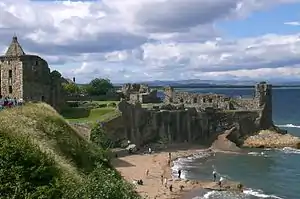 - ๐ St Andrews Castle, The Scores KY16 9AR, โ +44 1334 477196. Daily Apr-Sep 09:30-17:30, Oct-Mar 10:00-16:00. There's been a bishop's palace here since the 12th century, which successive armies wrecked; the present building is from 1400. It hosted royalty and also prisoners; in 1478 the unlucky Archbishop Patrick Graham was deemed insane and incarcerated in his own "palace". In 1546 during the Reformation, a Protestant preacher was burnt at the stake here, so his followers got in pretending to be building workers, lynched the cardinal, and barricaded themselves in. In the ensuing siege, a sapper-mine and counter-mine were dug through the underlying solid rock, which you can explore. The castle fell into disuse and in 1656 the burgh council took much of its material to re-build the pier. So it's now a picturesque shell in a great scenic location. Adult ยฃ9, child ยฃ5.40, conc ยฃ7.20; combi with cathedral ยฃ12 / ยฃ7.20 / ยฃ9.60.