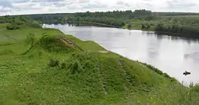 Staraya Ladoga (Russian: Ста́рая Ла́дога, Finnish: Vanha Laatokka), or the Aldeigjuborg of Norse sagas, is a village (selo) in Leningrad Oblast, on the mighty Volkhov River 8 km north of the town of Volkhov. It was annexed by the Viking Rurik, from whom the Tsars traced their bloodline. Staraya Ladoga was the first capital of Russia. It is part of the Silver Ring of cultural and historical centers of Northwestern Russia.