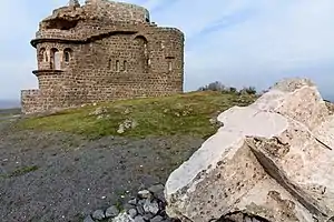 - 🌍 Zebrnjak (Зебрњак), village of Mlado Nagoričane. Situated on an elevated location, this grand monument was built in 1937 by the Serbs to commemorate the 25th anniversary of the Battle of Kumanovo during the Balkan Wars which saw the Serbs defeat the Turks. Considered the most monumental memorial in the central Balkans, it featured a tall three-sided pyramidal tower atop a large base. The remains of 678 Serbian soldiers are in the ossuary. In 1942, it was mostly destroyed by the Bulgarian army. Today, the base remains and can be visited. There are plans to reconstruct the monument fully but nothing has transpired as of yet. The roof offers sweeping views of the surroundings.