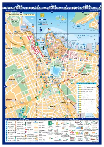 The most scenic and interesting part of Stavanger for visitors is the waterfront area of town surrounding the inner harbor like a big "U", all of which is quite walkable. On the west side of the inner harbor is the old town with two museums. Also the Tourist Information Office in Stavanger is located at Strandkaien, next to the harbor between the cruise pier and the historic Old Stavanger. The TI office, open 08:00 - 18:00 in the summer, is a good source of free advice, brochures, maps, and wifi. On the east side is also lots of shops and restaurants, as well as the Petroleum Museum. At the bottom of the "U" is the market plaza and the Stavanger Cathedral. South of the Cathedral is the man-made Lake Breiavatnet, which separates the harbour area from the train and bus stations and more museums. To go much farther afield, some form of transportation might be useful.