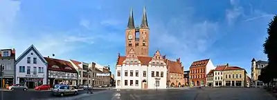 - 🌍 Tangermünde (11 km southeast of Stendal, 12 minutes by train). Small, but historically notable town with many historico-cultural sights, including a medieval castle, an almost complete town wall with several fortified towers, a historical Gothic town hall and churches.