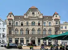 - Sternhaus: It derives its name from the golden Star installed above the main entrance. The star is held by two birds of prey and represents the thriving iron industry. The angelic figures above the windows depict the five senses of man.