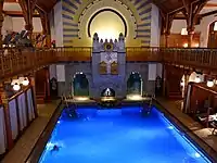 • 🌍 Sturebadet, Sturegallerian 36 (T Östermalmstorg), +46 8 545 015 00. M-F 06:30-22:00, Sa Su 09:00-19:00. The costliest, and possibly the most beautiful, spa in central Stockholm. For those who can afford it, this place offers luxury in a listed 1880s building (faithfully reconstructed after a fire in 1985). Entrance costs 495 kr (F-Su 595 kr). It includes rented towel, robe and slippers, and entrance to pool, spa-section, gym and saunas. Most spa treatments 540 kr and upwards.