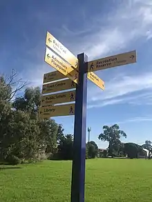 - 🌍 Arts Trail, ☏ +61 3 5145 6790. 24 hours daily. A 3-km walking trail through the town along the Avon River, passing Shakespeare-themed artworks. The trail starts outside the library, and goes down Raymond Street to get to Merrick Street, which looks down on the Avon River. Go south down Merrick Street to get to the Garden for Humanity, which is at the corner of Merrick and McMillan Street, and contains some historic trees and benches. Going down McMillan Street, you'll reach the Princes Highway, which you cross to reach Apex Park, and take a gravel path to McMillan Street (McMillan Street is split in twain by the railway line, you need to end up east of the railway line). This may be difficult for those with injury and disability. The historic railway bridge near the Apex Park is worth a detour.