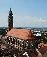 The most important buildings are the beautiful Gothic cathedral-like Basilica of St. Jacob, the Romanesque St. Peter's Church, the Carmelite monastery with its Baroque church and library, St. Vitus's, where you can find a life-size personification of "state and church" joined in holy matrimony.