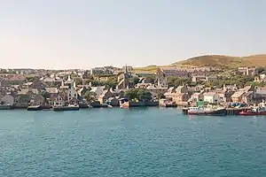Stromness is a port on the Mainland of the Orkney Islands, with a population of roughly 2200. To the Vikings, Straumsnes meant the headland just south, where a fierce tide rips between Scapa Flow and the Atlantic; get past that and you came safely into Hamnavoe or "peaceful harbour" where the town now stands. It's long been a fishing village but it was more important in the 17th and 18th centuries, when Britain was often at war with France, the Channel was unsafe, and shipping had to detour around the north of Scotland. Hudson's Bay explorers and traders, and the expeditions of Captain Cook and of Franklin, all stopped here for rest and re-supply. Today Stromness is the second largest town in the Orkneys but it's a quiet place, with a pleasant narrow flagged main street, and it's escaped the industrial sprawl seen around Kirkwall.