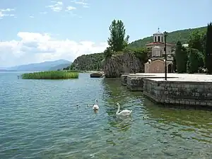 - The river Drim, which enters Ohrid lake in the St. Naum monastery, comes out in Struga after going through the whole lake.
