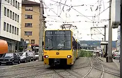 Stuttgart's Stadtbahn is a combination of suburban light rail, tramway/streetcar system and underground metro (subway). In the very centre of the city, the tracks run underground, and the overground sections run along city streets, partially grade-separated and partially integrated into city streets like tramways. That way, the yellow carriages of the Stadtbahn can travel all the way from the suburban hillsides to the central hub by the Hauptbahnhof, allowing convenient commuting with minimal changeovers.