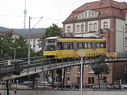 The historic cable-car (Standseilbahn) line connects Stuttgart-Heslach with the Waldfriedhof cemetery on the hill. It only has two stations - one downhill and one uphill: