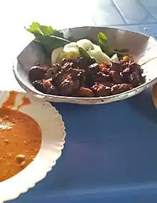 - One of the popular dishes from western Sudan is Agashe, meat seasoned with ground peanuts and spices (mainly hot chilli), and cooked on a grill or an open flame.