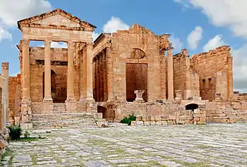 Sufetula (or Sbeitla) is a fairly well preserved Roman town in the mid west of Tunisia.