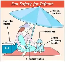 Very young babies (under 6 months) normally don't use sunscreen. Use other protection strategies instead, including shady areas, hats, long-sleeved clothes, and going indoors during peak sun hours (usually 10AM–2PM).