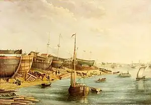 Sunderland grew up around the estuary of the River Wear when three medieval villages combined. Monkwearmouth on the north bank had a monastery from 674 AD; its abbot encouraged glass-making, founding an industry for the next 1300 years. The monastery was home to the Venerable Bede, who wrote that he was "ácenned on sundorlande" - born in a sundered or separate land of that monastery on the south bank. This became Sunderland and outgrew Monkwearmouth and the third settlement of Bishopwearmouth further upriver. Early industry was based on fishing, salt-panning, coal-mining, shipbuilding and breaking, glass-making, and sea trade. By the 19th century the conurbation was sprawling and squalid, and in 1831 it was the first place in Britain to be struck by the cholera pandemic, which inexorably spread across the nation. The three traditional parish administrations were overwhelmed and this was the prompt for creating the combined borough of Sunderland in 1835.