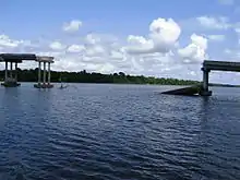 Lake Brokopondo, official name Prof. Dr. Ir. W.J. van Blommesteinmeer, is a reservoir that was created after the construction of the Afobakadam in 1964. With an area of 135 thousand hectares it is among the largest reservoirs in the world. Bare treetops still protrude above the water surface. The former hill tops have become islands and nowadays these are tourist destinations.
