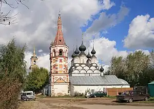 - 🌍 Church of St. Nicholas (Никольская церковь). Built 1729-1739. One of the first churches built in the city after the great fire of 1719 and one of the five churches in Suzdal with a bell tower in the form of a concave tent, the so-called "Suzdal tune".
