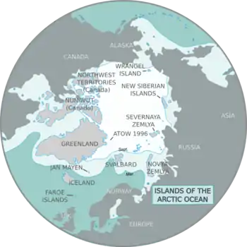 Svalbard (Russian: Шпицберген, Shpitsbergen or Грумант, Grumant) is a group of islands located between the Arctic Ocean, Barents Sea, Greenland Sea, and the Norwegian Sea. The area is sometimes referred to as Spitsbergen, the main island with all the settlements. The islands are directly north of Norway, and have been under Norwegian rule since 1920. Svalbard's settlements are the second most northerly permanently-inhabited spots on the planet, after the Canadian military base at Alert.