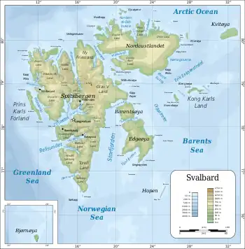 All settlements in Svalbard are on the main island of Spitsbergen (or Vest-Spitsbergen).