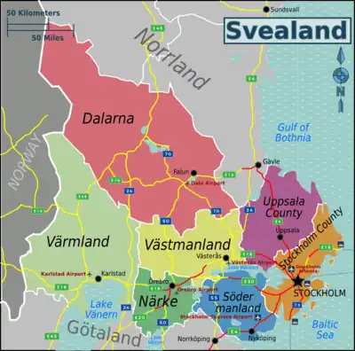 - Bergslagen, consisting of Västmanland, Dalabergslagen and Värmlands bergslag