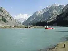 • Mahodand Lake (Pashto: د ماهو ډنډ‎ - "Lake of Fishes") is a lake about 40 km from Kalam, in the Usho Valley of Swat District, Khyber Pakhtunkhwa, northwestern Pakistan. It is accessible with a four-wheel drive vehicle, and is a good resort for fishing, boating and camping. The lake is surrounded by the lush green meadows, snow clad mountains and dense forests, the banks of the Mahodand lake serve as the camping site during the summers season for the visitors & trekkers. The Mahodand Lake is fed by melting glaciers and springs of the Mount Hindu kush. It gives rise to Ushu Khwar, the major left tributary of the Swat River.