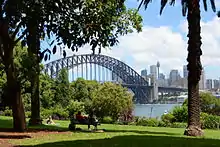 - Bradfield Park, Alfred Street South, Milson's Point (head directly down the hill from Milson's Point station; or head east from the Milsons Point ferry wharf). Bradfield Park is directly adjacent to the Harbour Bridge's northern approach. However, the very south end has the best view of the city on the other side of the harbour.