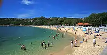 - π Balmoral Beach. Family friendly beach away from the main Harbour waters. Good for a quick swim in the swimming baths, enclosed by shark nets and a wide boardwalk. Plenty of cafes around.
