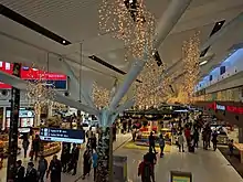 T2 has a large food and shopping area, with a large food court located airside to the right after you go through security. Some locations are near gates.