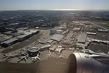 Sydney Airport is Australia's busiest airport and the main gateway to Australia. It is 9 km from the CBD (city centre) on the northern shores of Botany Bay. Being close to the city centre and also one of the oldest commercial airports in the world means this airport is space constrained and hemmed in by residential areas.