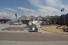 Along the beach, concrete groynes were built into the sea in an effort to halt sand erosion. These groynes are not visible at high tide and present a danger to unaware bathers. They are marked with cross signs along the beach.