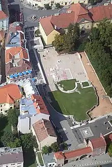 - 🌍 Medieval Ruin Garden (Középkori Romkért, the ruins of the Basilica of Our Lady,Nagyboldogasszony-bazilika romjai), Koronázó tér, Várkörút 5. (the ruins can be seen in the middle of Székesfehérvár), ☏ +36 22 315583. A national memorial on Koronázó tér, just east of the main square. In the middle ages this was the site of Hungary's most important church and had it not been for the Turks blowing it up. Here is the ruins of the main church of the medieval Hungary, Here stand the basilica dedicated to the Virgin Mary, it would be to Hungary what Westminster Abbey is to England. The church was begun in 1016 under Hungary's first Christian king, Szent István. At the time, Székesfehérvár was the capital of the kingdom, and this church was the site of numerous coronations. In addition, from 1038 to 1543 fifteen Hungarian kings were put to eternal rest here (starting with Szent István himself and ending with Szapolyai János). As already mentioned, the church was destroyed by the Turks in 1601 and in 1800 the remains were used to build the Bishops Palace on nearby Városház square. Today all that remains of the once great basilica are stone walls outlining its form. The big draw, however, is to visit the mausoleum containing Szent István's sarchaphogus. This was discovered in 1803 during the building of the Bishop's Palace. The cherubic forms on the outside and royal relics contained within clearly identified this as the tomb of Szent István. The sarchaphogus originally was taken to the National Museum in Budapest, but was brought back to Székesfehérvár in 1936, and since then has remained in the attractive mausoleum at the entrance of the garden. Photography is not allowed in the mausoleum.