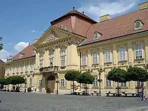 - 🌍 Bishops Palace (Püspöki Palota), Városház tér. 5 (Center), ☏ +36 22 510694. This large pile dominates Városház square and but basically made in Baroque style is there are some Cpof element that way this is one of Hungary's most important Copf style buildings. The palace was constructed in 1800-1801 from ruins of the former cathedral in the Ruin Garden exactly made from ruins of the former Holy Mary Provost (Coronation) Church.