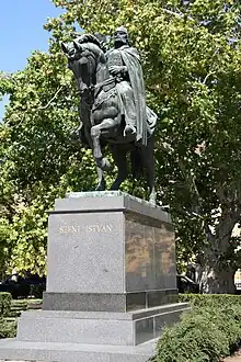 - 🌍 Equestrian statue of St. Stephen (Szent István lovasszobra), Szent István tér (Downtown). Swedish black granite plates wrapped equestrian statue. A Sidló Ferenc work. In 1938 was inaugurated 900 year after the death of the first Hungarian king.