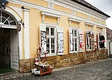 - 🌍 House of Folk Arts (Népművészetek Háza), Rákóczi utca 1 (Opposite to Town Hall), ☏ +36 26 310244, fax: +36 26 310790, titkarsag@femuz.hu. 1 Apr-30 Oct: W-Su 14:00-18:00. Folk Arts collection of Pest county. It's in one of the oldest preserved rural character, charming buildings of Szentendre. The basement makes unique this 18th-century building, because it gives the impression this is a storey house. The stone-walled cellar contents clay plastered three rooms with foot thick beams, spun twigs. The ceiling of the basement is covered with the original 18th-century wide plank elements. Adult/reduced Ft 1500/750 (multiplace ticket).