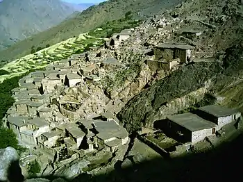 Tacheddirt (also Tachdirt) is a small village high up (2314m) in the Atlas Mountains of Morocco. It is the highest settlement in the Rhirhaia valley, about 2.5 miles further up than Ikkiss.