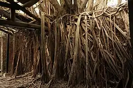 - 🌍 Anping Tree House (安平樹屋 (Ānpíng shù wū)), 108 Fort St., Anping District (entrance through the back door of Old Tait & Co. Merchant House)). Daily 08:30-17:00. Anping Tree House was built as the warehouse of Tait & Co. During the Japanese occupation it was the office and warehouse of the Japan Salt Company. After World War II, the salt industry in Anping declined, and this area was abandoned. Over time, the aerial roots and branches of banyan trees wrapped around the building. Combined with the soil, red brick and partial concrete wall, this creates an unusual sight and is a popular tourist attraction. NT$70.