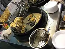 - 🌍 Vegetarian Kitchen (靜心健康素食坊), No.26, Meide Street (Exit 1, Shilin Station; the restaurant is a few minutes' walk on the left - directly adjacent to the MRT line), ☏ +886 2-88615141. 11:00-20:00. Simple, tasty Chinese vegetarian meals. Choose a set meal from the menu and it is served on a tray. Owner speaks English, and there's a picture menu in English and Chinese. NT$100–150.