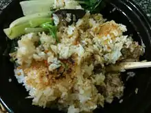 The most famous dish in Taishan is Stone Bowl Eel Rice "Wong Seen Fon". In Guangdong's major cities, a scattering of restaurants will have "Toisan Wong Seen Fon" as a specialty but Taishan is the place to go to experience the original, especially Shuibu Town. Rice is first cooked halfway before being mixed with precooked eel in a clay pot. The clay pot is then fired up to finish cooking the rice. Where the rice touches the clay pot, oil from the precooked eel drips down and makes a crispy layer called "fon jil". (Taishanese call this layer "nuong" which is also the word for burnt.)