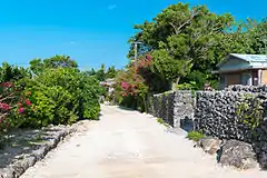Tiny even by Yaeyaman standards, Taketomi (population around 300, area 5.4 km²) gets a disproportionate number of visitors because of its convenient location just off Ishigaki, and above all, its carefully preserved Ryūkyū village (集落 shūraku). Many houses in the village have red clay roofs with guardian shisa lions, a low surrounding wall of coral and extensive flower beds, which are particularly pretty in spring. Most roads are unpaved lanes of white sand and ambling water buffalo pull tourist-packed carts through town. While hardly off the tourist trail even before, Taketomi's popularity skyrocketed in 2012 when NHK aired the drama Tsurukame Josan'in (つるかめ助産院), and accommodation prices have soared to match.