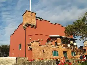 - Red Castle 1899 (達觀樓), 6, Lane 2, Sanmin Street, ☏ +886 2 8631-1168. A colonial building sits on the hillside, built in 1899. This is the best view cafe in Tamsui. They serves both Western and Chinese dishes. The entrance is just east of the Mackay statue, atop a hill reached by 106 stone steps.
