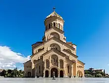Tbilisi (Georgian: თბილისი), archaic spelling Tiflis (Russian: Тифлис), is the capital city of the country of Georgia, lying on the banks of the Mtkvari River. The metropolitan area covers 726 km² (280 mi²) and has a population of approximately 1.5 million (2022).