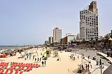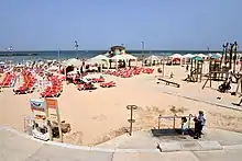 • 🌍 Metzitzim beach (Sheraton beach). Just south of Tel Aviv Port (which has no beach, the waves crash against the wall of the boardwalk). This beach became famous as the setting of the movie Metzitzim (1972). Now it's the most popular destination for families.