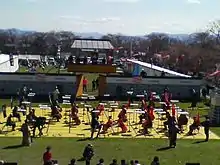 - Ningen Shogi (δΊΊιε°ζ£), literally "human shogi", is held annually as part of Tendo's cherry blossom festival, on a Saturday and Sunday near the end of April on Mt. Maizuru. Warriors in full armor and kimono-clad maidens move between spaces at the command of their warlords/players, while the audience watches from the nearby hillside.