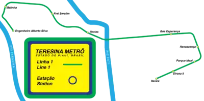 Teresina has a light rail system with 9 stations that was built on tracks laid in 1922 (it is referred to as a metro, but is completely an above-ground system). The rolling stock is new, but the stations are dilapidated and, with the exception of two stations (Engenheiro/Bandeira and Frei Serafim), are nowhere near where you would travel in Teresina as a visitor or even as a member of the upper poor class or higher. Most of the stations on the east side of the Poti River are on narrow, dead end streets in poor neighborhoods with no commerce nearby and no bus terminals. Station names can be a point of confusion for both locals and visitors. The west side terminus is referred to as "Bandeira" station, yet the station's official name is "Engenheiro Alberto Tavares Silva." "Novo Horizonte" is sometimes referred to as "Parque Ideal." Other stations on the east side also vary in name and have no signage to indicate which station you are at (e.g., Mercado, Itararé, Novo Horizonte).