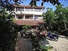 - 🌍 Khammouane Inter Guesthouse (on the main road, about 200 m southwest of the post office), ☏ +856 51 212171. Check-out: 11:00. With the charm of an administration building from another era, it is not going to win any style competition, but fairly priced basic rooms, a spacious lobby with free coffee and drinking water refill make it an important addition to the limited range of accommodation in town. Offers guidance for 'The Loop', in-house motorbikes for rent for 60,000 kip/day. If you only want to ride it to the rock climbing crag you can get it for 50,000 kip/day. Free luggage storage. Free Wi-Fi. Single fan, 50,000 kip; double fan, 60,000 kip; double air-con, 80,000 kip; triple fan, 70,000 kip.