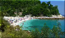 🌍 Fari Beach. The beach is recommend it for people who prefer a quite place to swim. This is not an organized beach and good for snorceling. From a small parking lot you reach the beach in 5 min on foot.