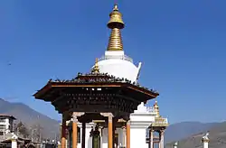 - Phajoding Gompa — Founded in the 13th century by Togen Pajo, a yogi from Tibet, this monastic complex is a three-hour hike from Thimphu (start from Motithang or BBS Tower). At a height of 3,640 m, it commands excellent views over Thimphu. There is space for camping. Otherwise, the small Thujidrag Gompa (a 40-minute walk from Phajoding) offers simple accommodation (often full at weekends) and cooking facilities - offer donation directly to monk in charge. Even if you do not plan to stay at Thujidrag, this cliff hanging monastery is still definitely worth a visit. Locally, it is famous for its sacred spring water. There are several sacred lakes in the area, though these are a full day's circular hike from Thujidrag.