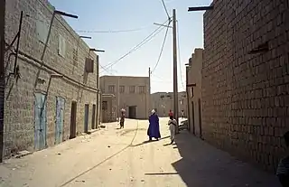 The city is in stark contrast to the rest of the country's cities, because it has more of an Arabic flair than of an African. The streets are made of sand (except one), and one has often to go down to get into the houses, because of the sand which has leveled the streets higher than the entrances of the houses.