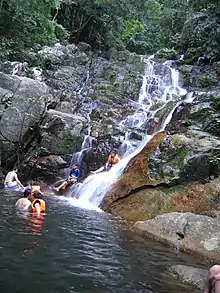 A path leads to waterfalls in the jungle, which is nice for a swim and climb over the large rocks.