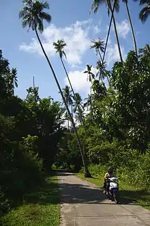 • Tekek - Juara It is relatively easy to cross the island on foot from Tekek to Juara. The path up from Tekek is a well established but unpaved, 7-km-long, 300-m-high track along the powerline with occasional stone steps to assist and a few fallen tree trunks to keep things interesting. It's feasible with a small backpack, but fairly strenuous, so allow plenty of time (at least two hours each way for the trail itself, or three and a half hours if crossing from settlement to settlement). In Tekek, the trail starts north of the airport (see the Do section). There is no cheap way to go back. Alternatives to walking are speed boat or 4WD, RM50–100.